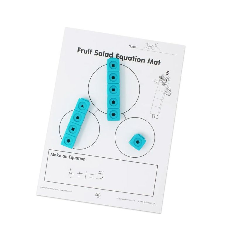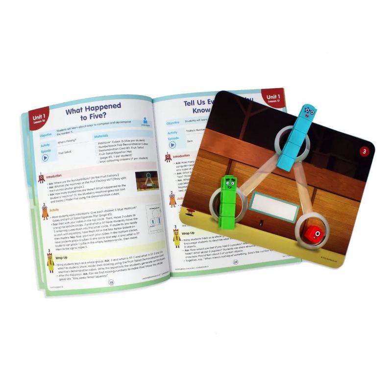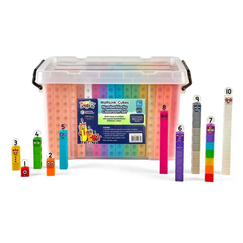 • Комплектът от Learning Resources е богато образователно пособие за обучение по математика, специално създадено за работа в клас или групови занимания. Комбинира популярните Numberblocks герои с практични свързващи кубчета, които помагат на децата да усвоят и визуализират ключови математически понятия.