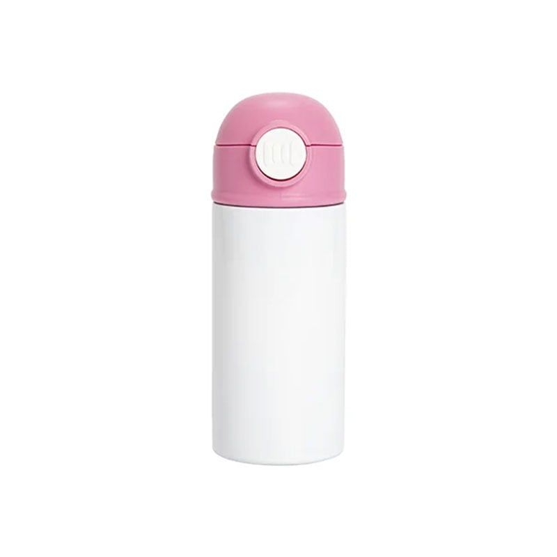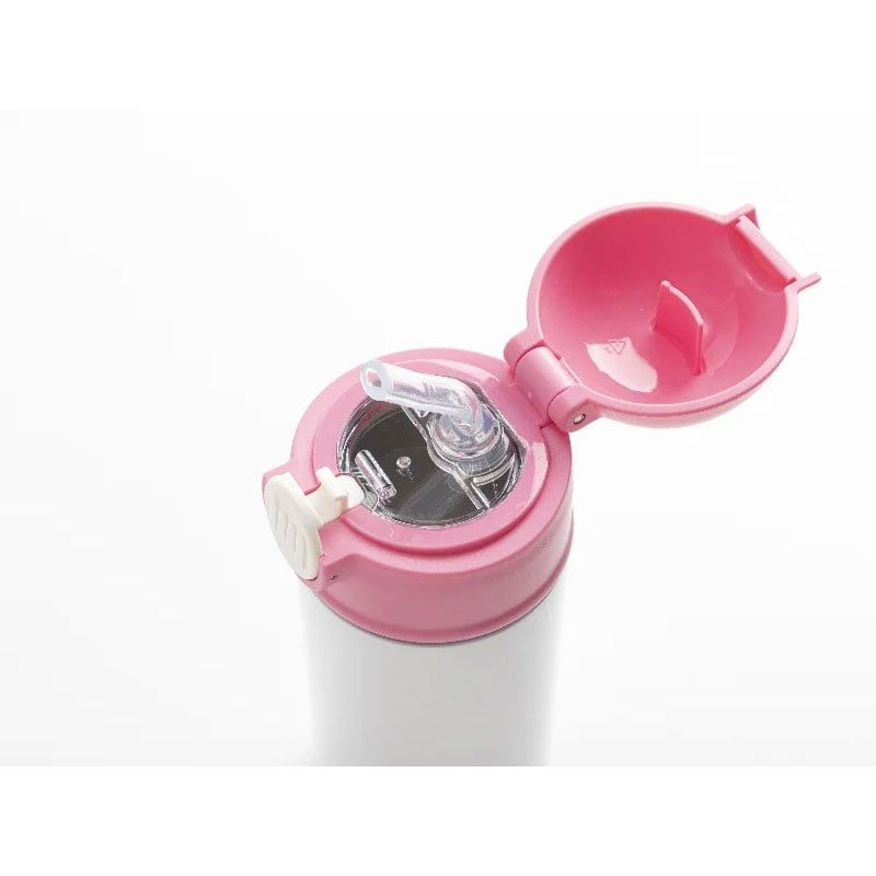 BESTSUB Бутилка, детска, с капак и сламка, 360 ml, бяло-розова