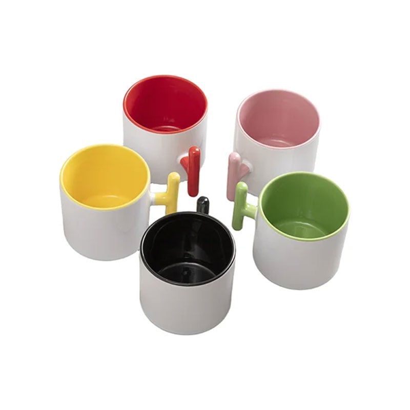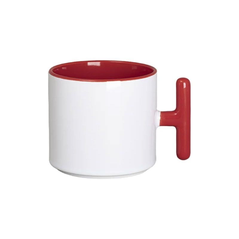 BESTSUB Чаша, керамична, с Т-образна дръжка, 270 ml, бяло-червена