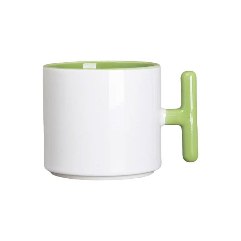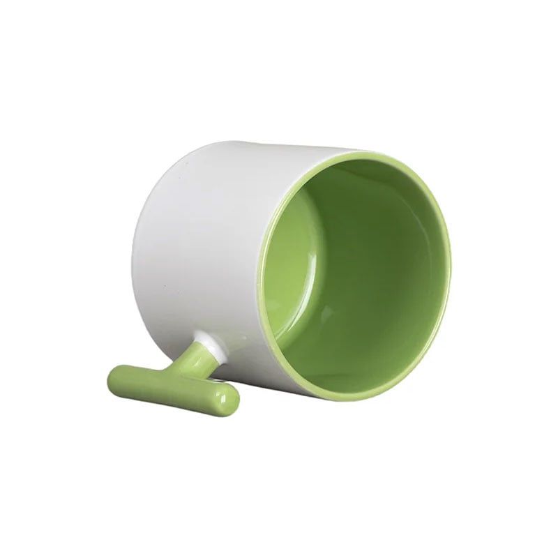 BESTSUB Чаша, керамична, с Т-образна дръжка, 270 ml, бяло-зелена