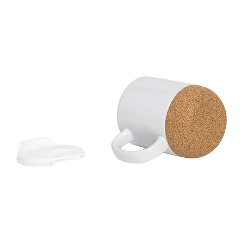 BESTSUB Чаша, керамична, с корково дъно и капак, 420 ml, бяла