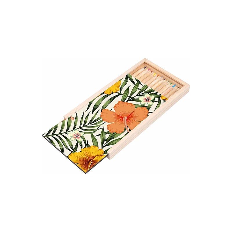 BESTSUB Кутия, дървена, с 12 цветни молива