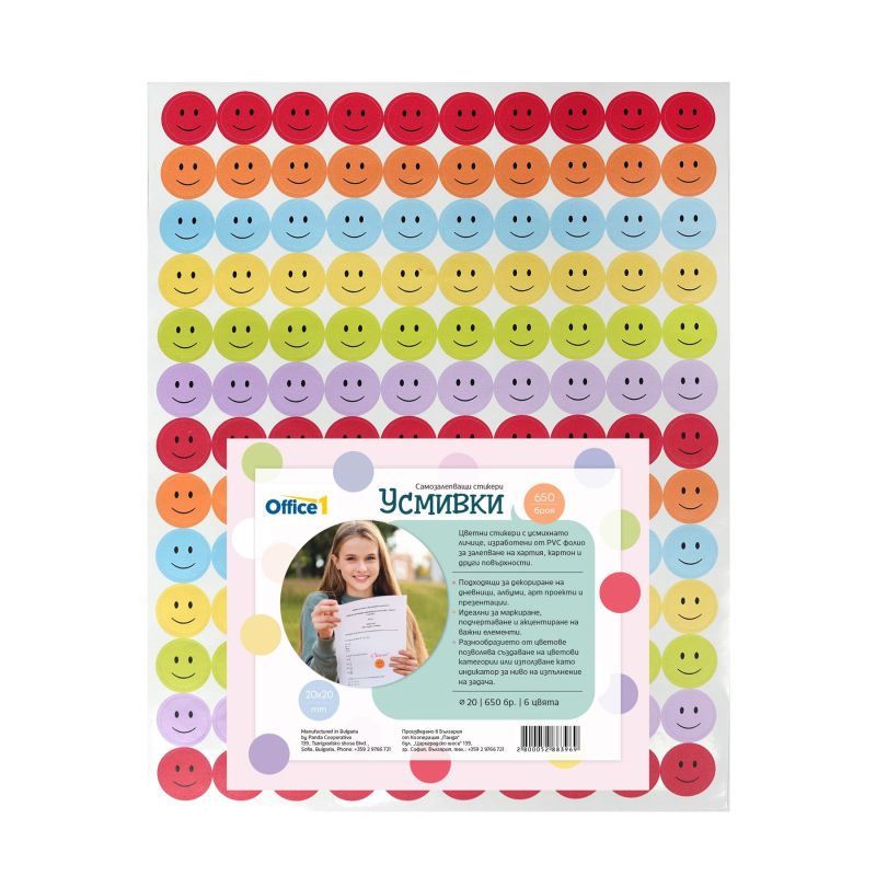 Office 1 Самозалепващи се стикери Усмивки, 650 броя