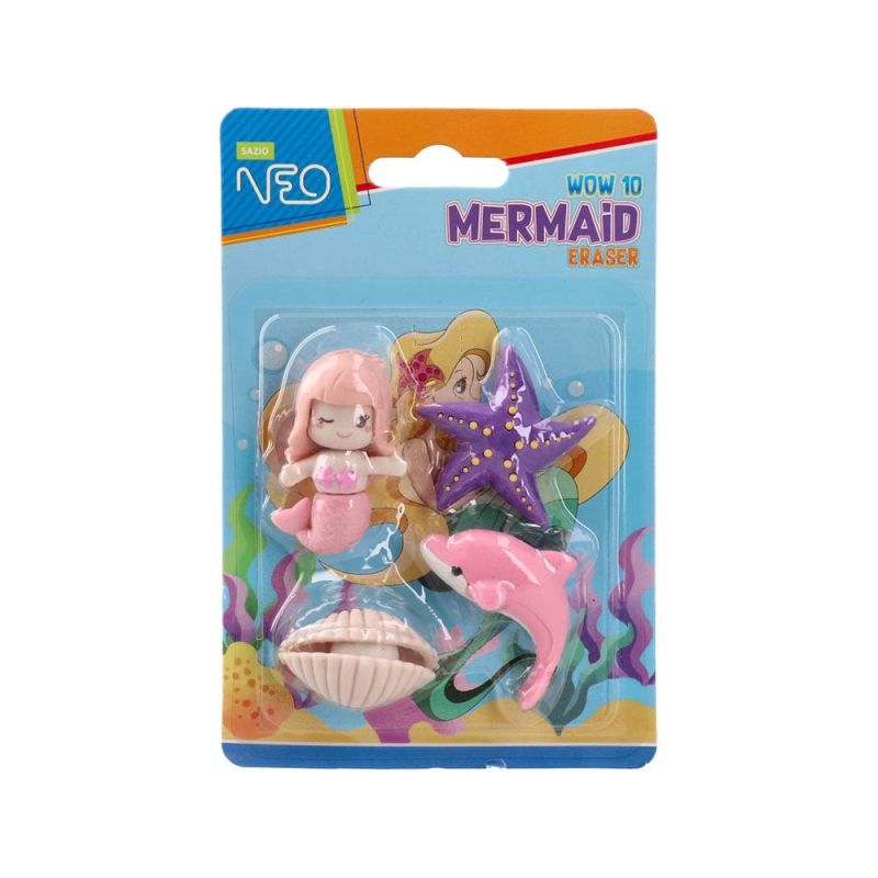 Гума за молив Sazio Wow10, русалка, 4 броя