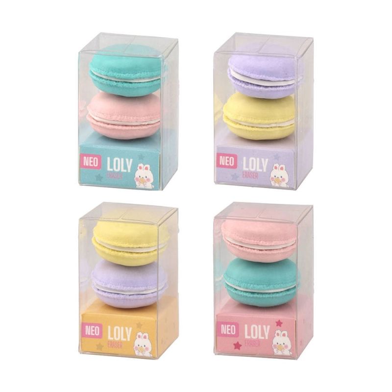 Гума за молив Sazio Loly, френски макарони, 2 броя, асорти, 1 брой