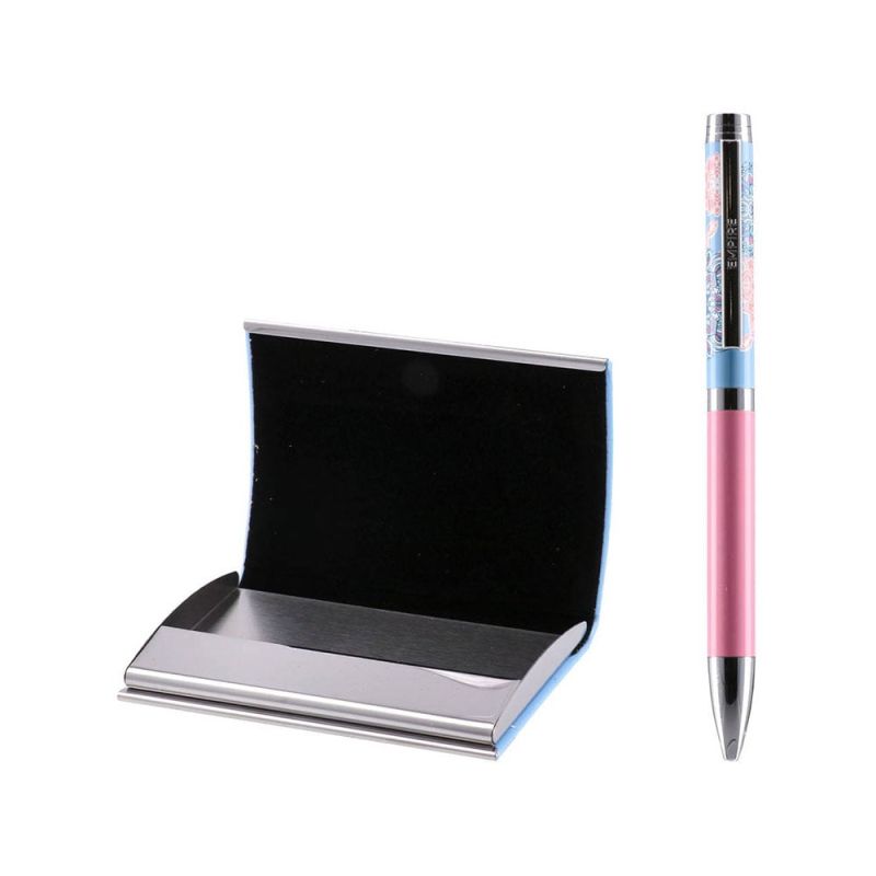 Комплект кутийка за визитки и химикалка Empire Agra, сини