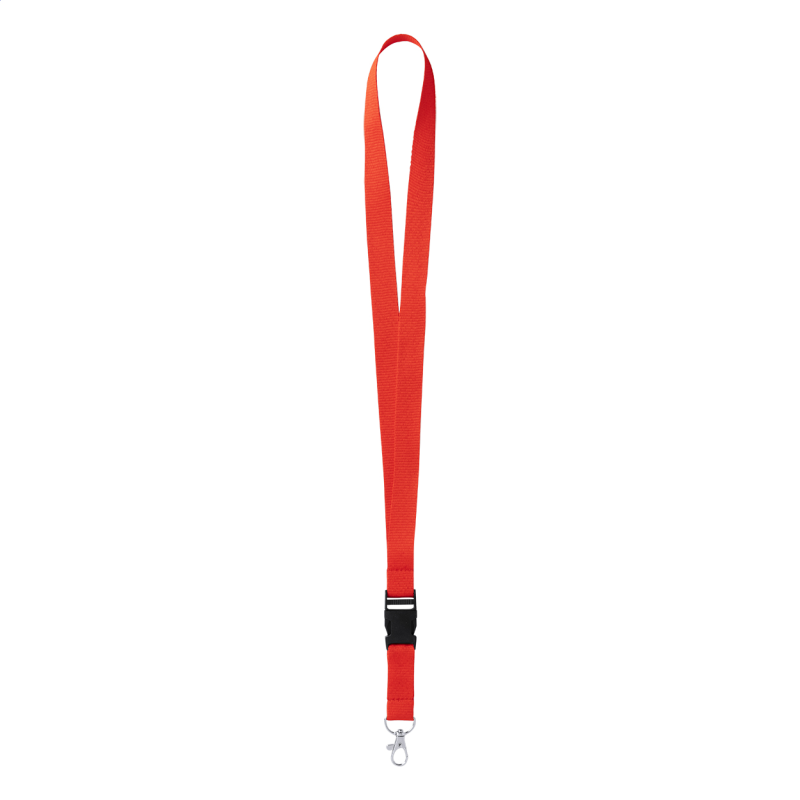 Лента за бадж, с подвижна катарама и карабинер, 20 x 550 mm, червена
