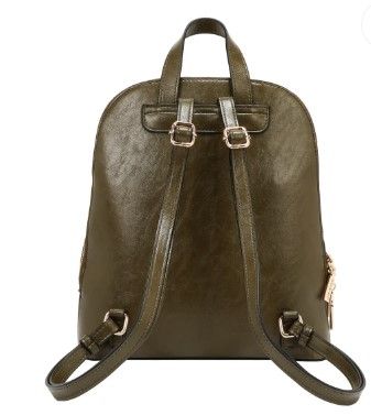 Висококачествена еко кожа отвън. Горна дръжка. 1 основно отделение с цип и преден джоб с цип. Метални крачета на основата за допълнителна защита. Гравирано лого на дръжките на циповете. Подплата от полиестер. Заден вътрешен джоб с цип и табелка с лого. 2 открити предни вътрешни джоба за смартфон и портфейл. Две регулируеми презрамки. Размер: 28.6 см (Д) x 10.2 см (Ш) x 31.1 см (В).