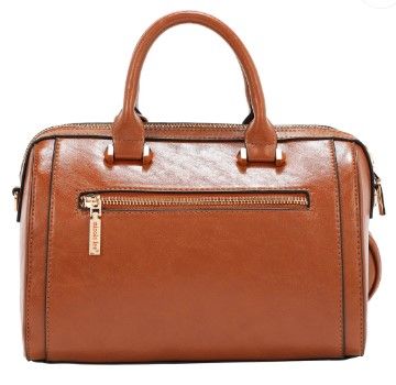 Висококачествена еко кожа. Основно затваряне с цип. Две къси дръжки. Ципове с гравирано лого. Вътрешна подплата от полиестер. Заден джоб с цип, вътрешен с цип и място за ключове и телефон. Включва регулируема презрамка. Размер: 22,2 см (дължина) x 7,6 см (ширина) x 11,4 см (височина) Допълнителен аксесоар