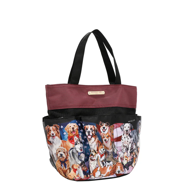 Външна част от полиестер с вътрешна подплата от мрежа. Равен връх. Закопчаване с велкро. Ексклузивен дизайн на принт на Nicole Lee само на предните и задните джобове. Имена на логото гравирани на табелка. 6 открити джоба за съхранение на бутилки с вода и основни принадлежности отпред и отзад. Структурирано, плоско дъно. Размер: 30.5 x 16.5 x 26.5 cm