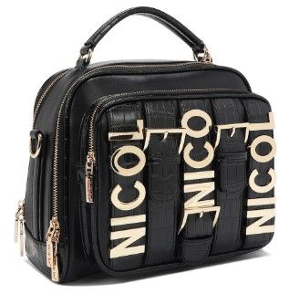 С две закопчалки с цип за лесен достъп до три вътрешни отделения, тази елегантна и модерна чанта Calista е идеална за тези, които обичат смели модни изявления с практична гъвкавост. С емблематични детайли с логото на Nicole Lee, полирани катарами и просторен интериор, тя е проектирана да привлича погледи през деня и вечерта, от работа до уикенд. Детайли за продукта Външна част от висококачестване еко кожа с акценти от изкуствена крокодилска кожаГорна дръжка (с височина 6,3 см) с автентичен кръгъл медальон Nicole Lee2 двупосочни ципаКатарами с метално логоСтранични D-образни пръстени за допълнително закрепване на презрамкаЗаден джоб с ципМетални крачета в основата за допълнителна защитаЗлатисти обковДръжки за цип с гравирано логоЕксклузивна вътрешна подплата от полиестер3 вътрешни отделения с централно отделение с ципЗаден вътрешен джоб с цип с табелка с лого и каишка за ключодържател2 предни вътрешни джоба за съхранение на смартфон и портфейлВключва регулируема, подвижна презрамка с логоРазмер: 28 см Д x 9 см Ш x 23 см В