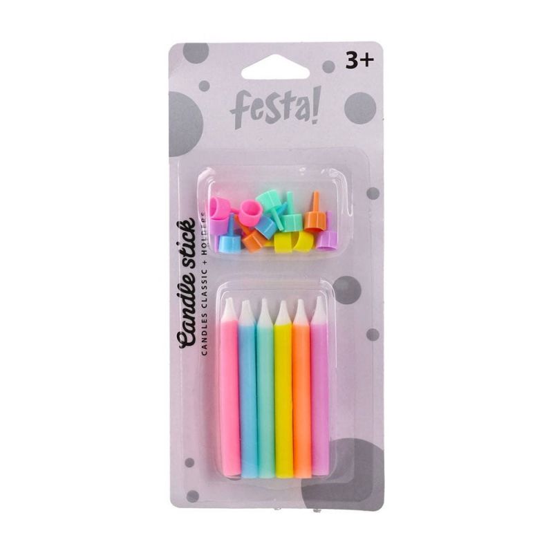 Свещи за торта Festa, пастелни цветове, 12 броя