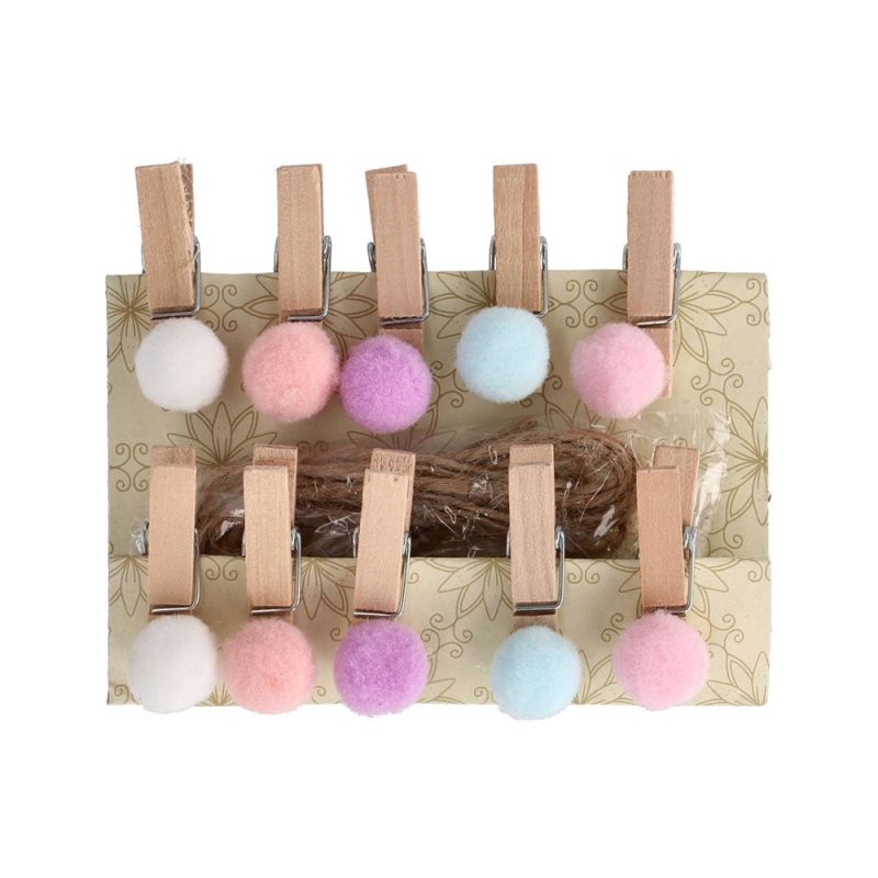Щипки с помпони Junior, дървени, 10 броя