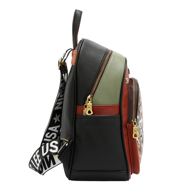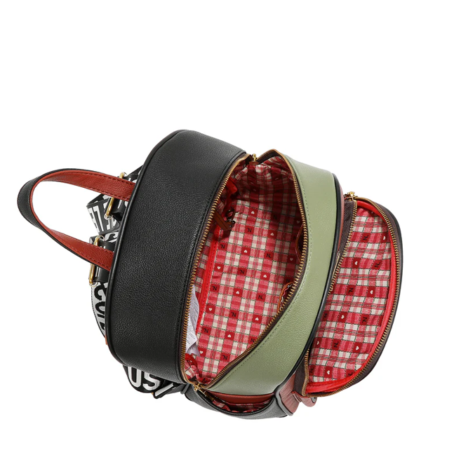 Комплект от 3 части: Раница, Чанта през рамо, Портфейл. Външен вид: висококачесвена еко кожа. Плочка с гравирано лого. Метални елементи в златист нюанс. Вътрешна подплата от полиестер. Раница: Двойни регулируеми презрамки. Горна дръжка. Основно закопчаване с цип. Преден джоб с цип. Отворени странични джобове. Заден вътрешен джоб с цип, плочка с логото и каишка за ключове. 2 предни вътрешни джоба за смартфон или портфейл Размери: 28 см (дължина) x 17,8 см (ширина) x 34,3 см (височина) Чанта през рамо: Основно закопчаване с цип. Горна дръжка. Вътрешен преден джоб. Включва регулируема презрамка. Размери: 21 см (дължина) x 7,6 см (ширина) x 17,8 см (височина) Портфейл: Цялостно затваряне с цип Гладка вътрешна подплата - 2 отделения за банкноти, 4 слота за карти и 1 централно джобче с цип за монети Размери: 19,1 см (дължина) x 2,5 см (ширина) x 10,2 см (височина)