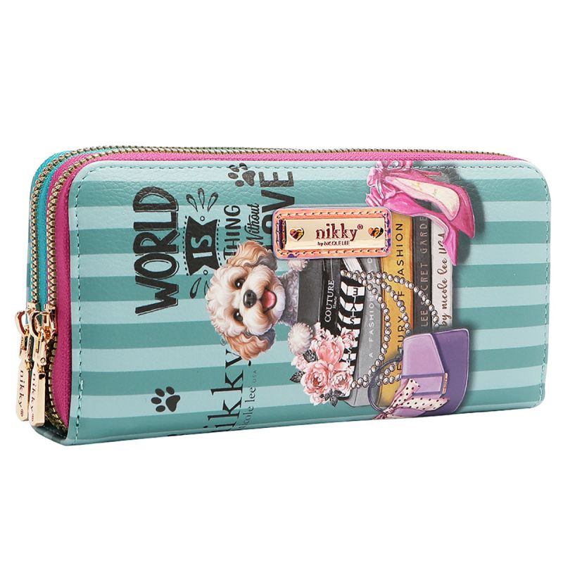 Изработени от висококачествена гладка еко-кожа. Две основни отделения с ципове с Nikky в златист оттенък с лого ципове. Златиста табелка с логото на Nikky отпред. Просторен интериор, 4 слота за карти, 4 слота за пари с централен разделител с цип. Подплатена с плат с характерен за Nikky с принт сърце и еко-кожа. RFID (Радиочестотна идентичност) БЛОКИРАЩ ПОРТФЕЙЛ. Борбата срещу кражбата на самоличност започва с портфейла ви. Портфейлът Nicole Lee е произведен с RFID-блокираща технология, която предотвратява проникването на сигнали от четящото устройство в портфейла ви, като същевременно поддържа съдържанието ви защитено. Размер: 19x9.5x4.5 cm