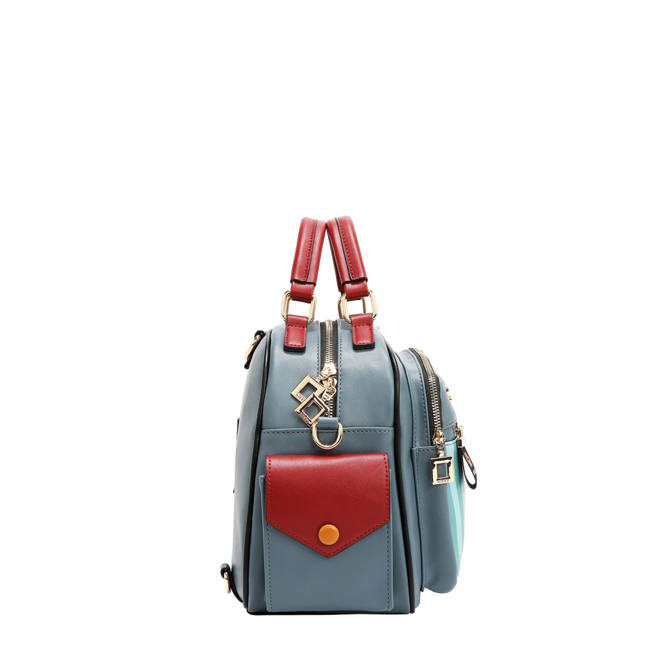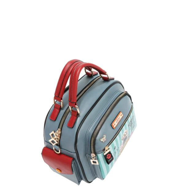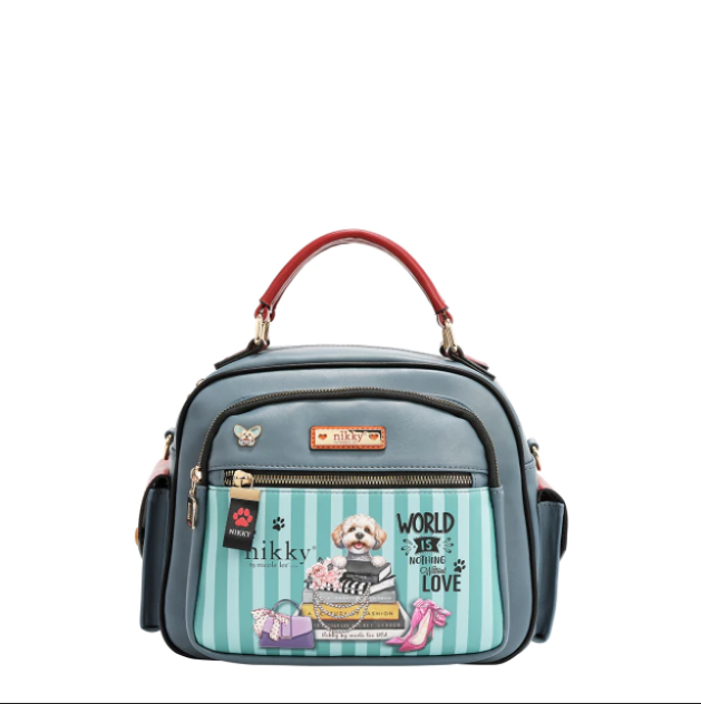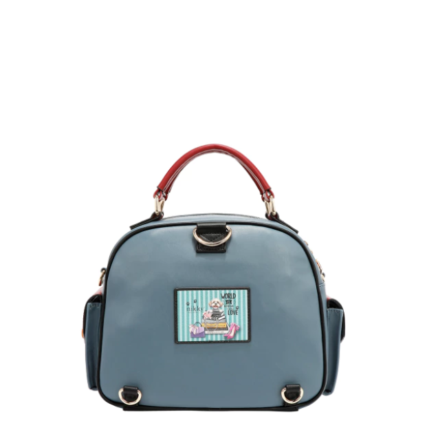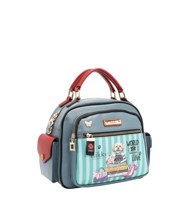 Изработена от висококачествена еко кожа. Две горни дръжки. Основно затваряне с цип и метални кръгли дръжки. Странични джобове за бърз достъп. Златна метална табелка с лого Nikky. Златни D-пръстени отстрани за презрамка. Регулируема и подвижна презрамка с дизайн Nikky. Два отворени предни джоба и един заден с цип. Декоративен ключодържател от еко кожа. Размери: 28x22.5x14cm Тегло: 750 г Почистване: Почиствайте внимателно с влажна кърпа.