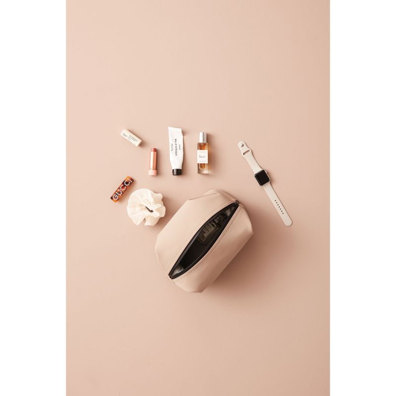 Изработен от гладък набук PU материал с водоотблъскващи свойства, несесерът предпазва съдържанието от влага и случайни разливания.