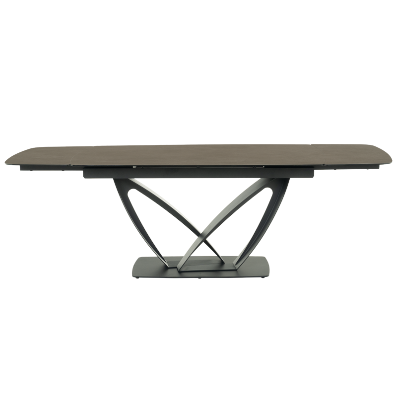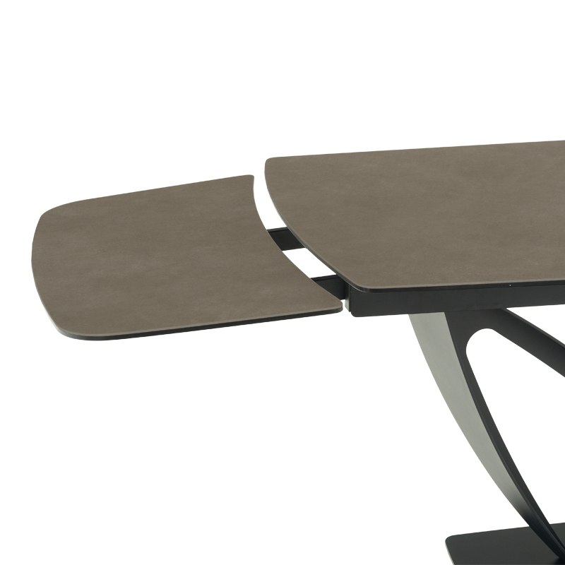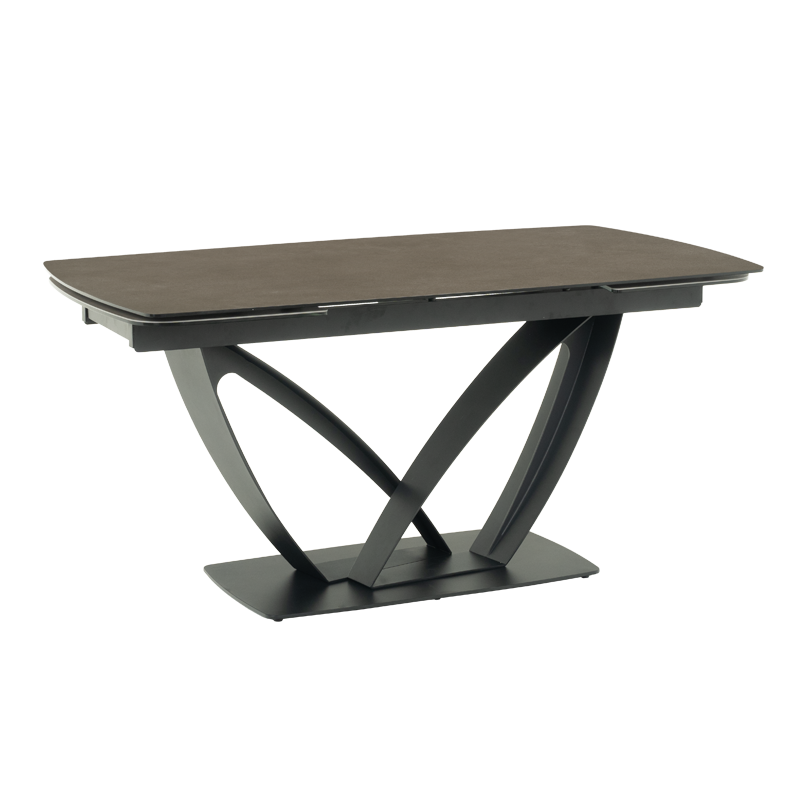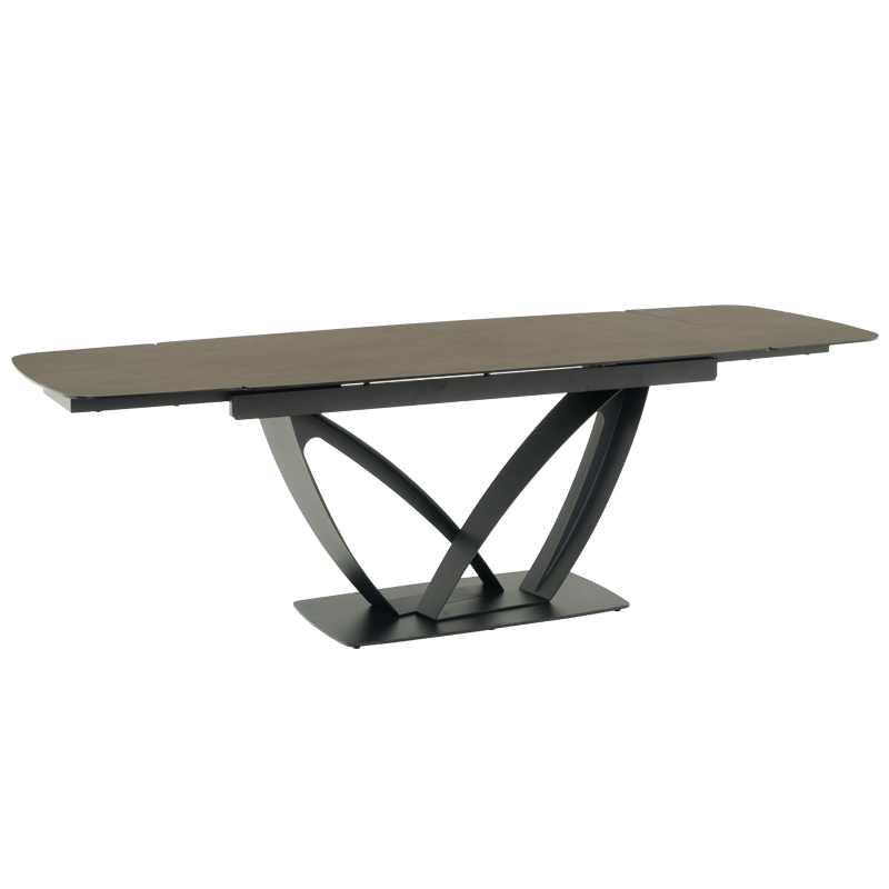 TORUN X е трапезна маса с интересна и масивна основа от праховобоядисан метал. Тя има правоъгълен плот от керамика и закалено стъкло с шарки, наподобяващи мрамор. Благодарение на механизма за разтягане той достига дължина до 240 см - така спокойно може да посрещате своите гости и всеки да се чувства комфортно. Пълна информация за размерите и характеристиките на модела ще намерите в таблицата в таб/поле "Техническа информация".