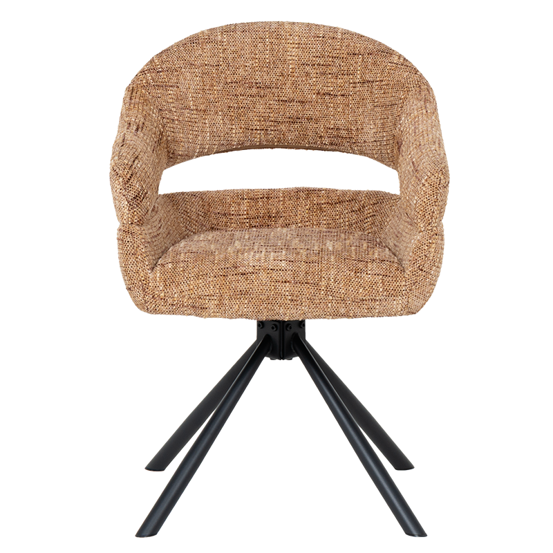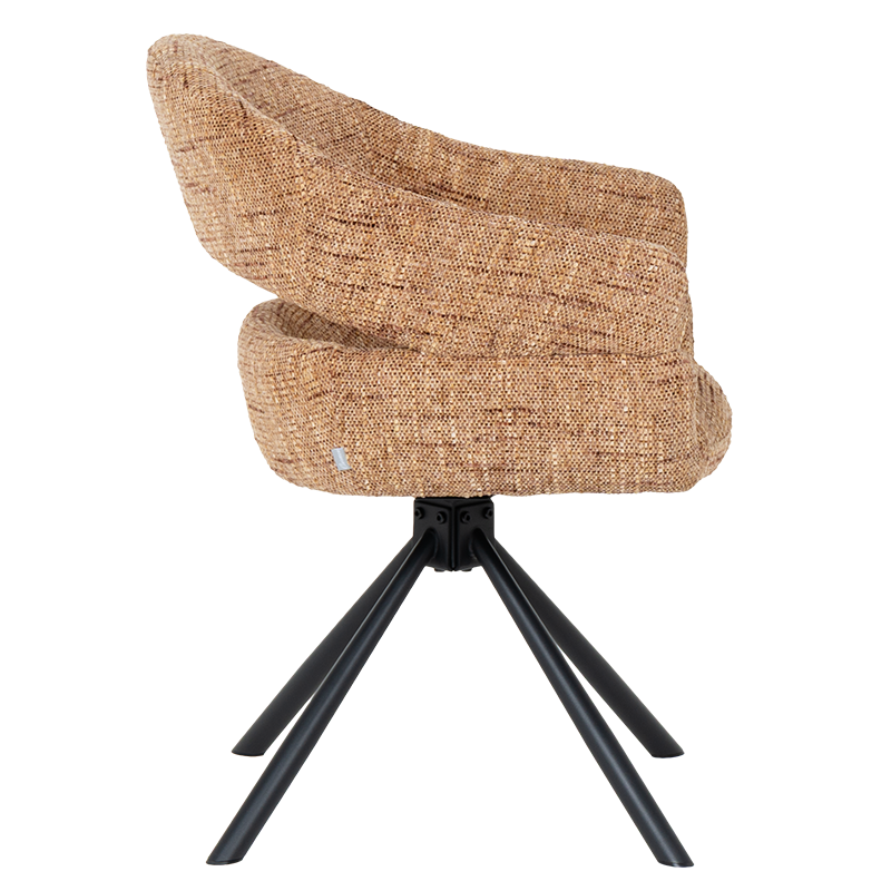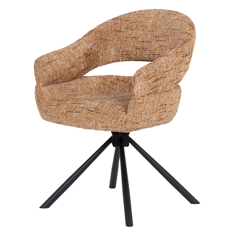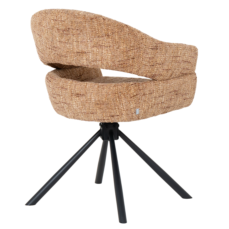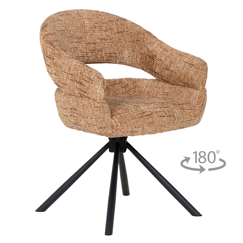 Трапезен стол SACABA впечатлява с елегантната си обгръщаща форма и изключителен комфорт, който превръща всяко сядане в удоволствие. Меката дамаска и седалката с покет пружини осигуряват отлична опора, а фината люлееща функция създава допълнително усещане за релакс. Въртенето на 180° с автоматично връщане в изходна позиция добавя практичност и лекота в ежедневието, а стабилните крака от праховобоядисан метал завършват модерната визия с надеждност и стил. Пълна информация за размерите и характеристиките на модела ще намерите в таблицата в таб/поле "Техническа информация".