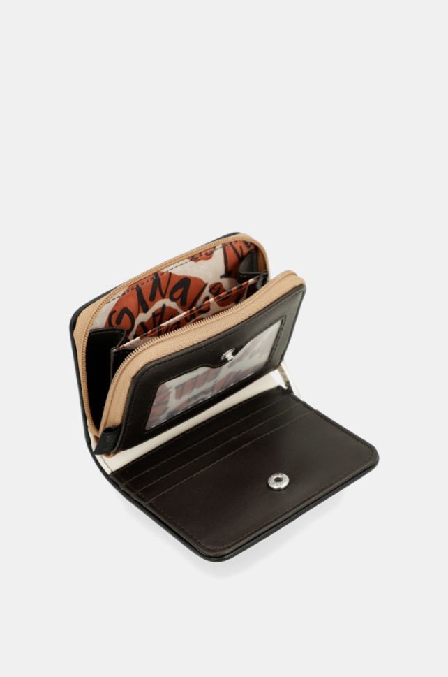 Вид: Висококчествена еко кожа Вид на затваряне: С цип и тик - так Джобове: 1 основен с място за банкноти и лични документи, 1 с цип за монети Размери: 10 x 9 x 2 cm Вътрешен състав: 100% ПОЛИЕСТЕР