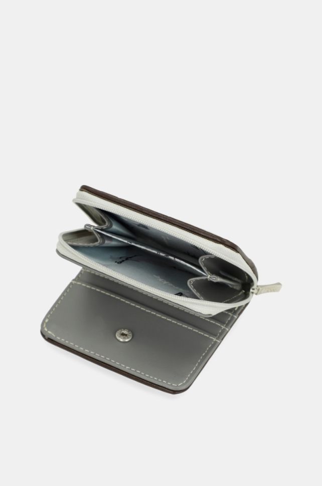 Вид: Висококчествена еко кожа Вид на затваряне: С цип и тик - так Джобове: 1 основен с място за банкноти и лични документи, 1 с цип за монети Размери: 10 x 9 x 2 cm Вътрешен състав: 100% ПОЛИЕСТЕР