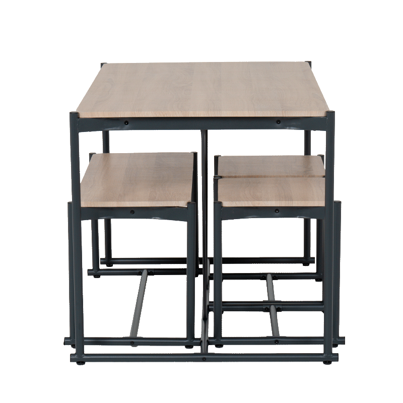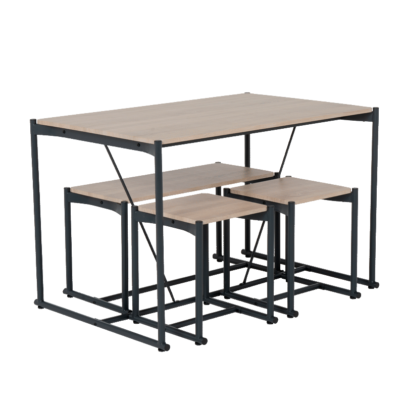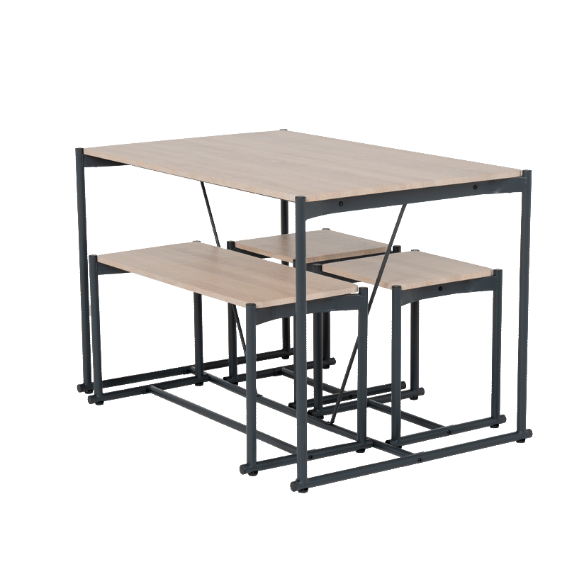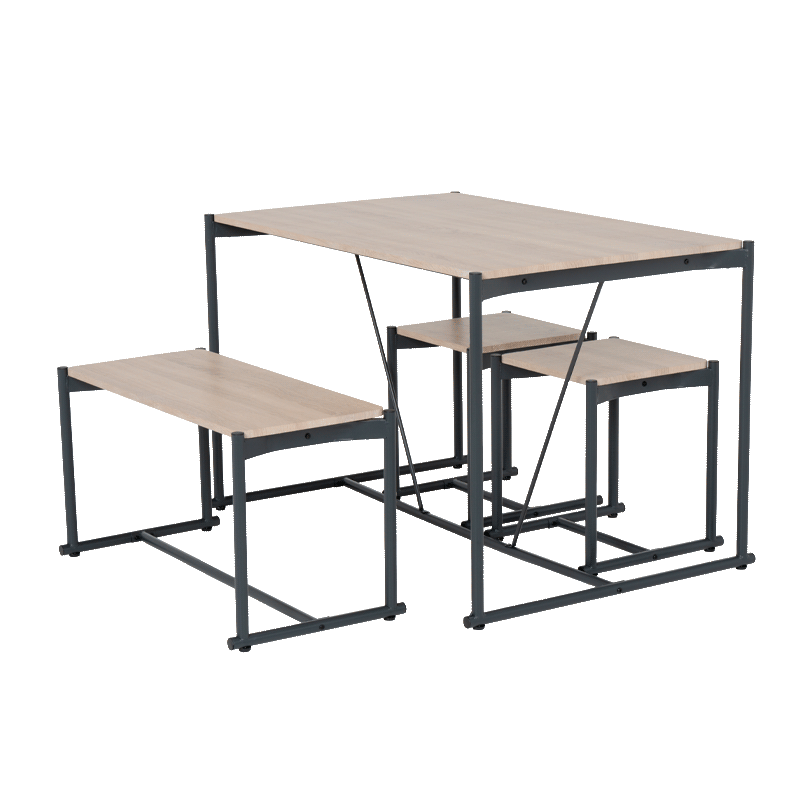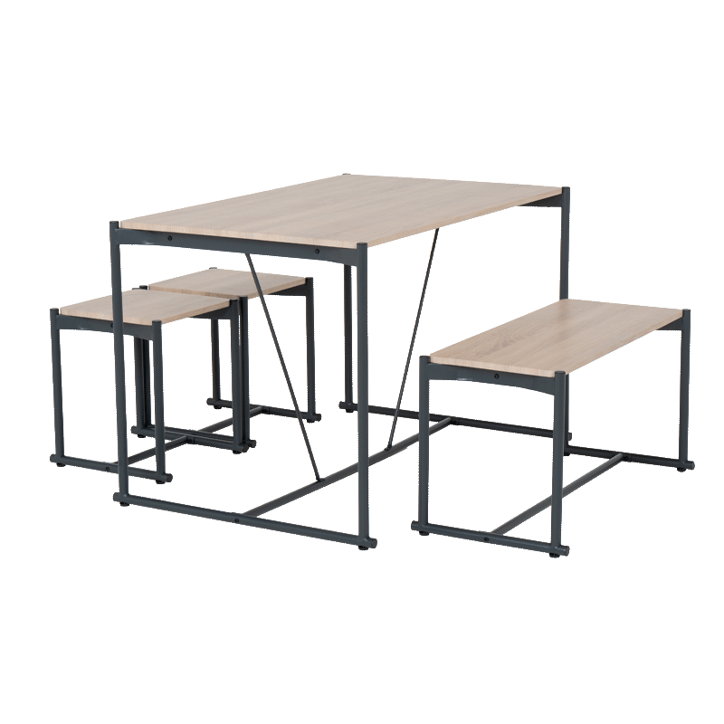 Комплектът Brevik предлага практично и стилно решение за всякатераса или кът за отдих на закрито, съчетавайки функционалност с модерен индустриален дизайн. Моделът включва компактна маса, удобна пейка и две табуретки, отличаващи се с плотове от MDF в цвят дъб сонома. Стабилните основи и крака са изработени от прахово боядисан метал, което гарантира устойчивост и дълготрайна употреба. Комбинацията от топли дървесни тонове и метална конструкция позволява на комплекта лесно да се впише във всяка среда, осигурявайки комфортно място за хранене и почивка. Пълна информация за размерите и характеристиките на модела ще намерите в таб/поле "Техническа информация".
