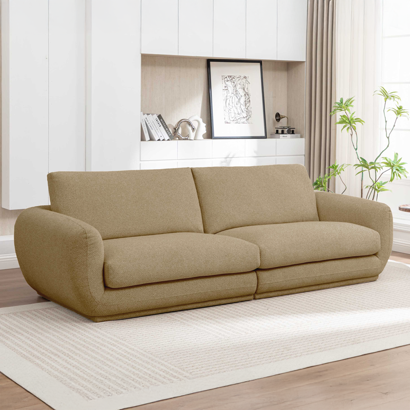Диван Forde е модерен модел с изчистени линии и нисък профил, който се предлага във варианти за трима или четирима души. Тапицерията е от мека и издръжлива дамаска, налична в три цвята: елегантно шампанско, светло сиво и свежо оранжево. Дизайнът залага на заоблени форми и широки седални възглавници за максимално съвременно излъчване. Комфортът е гарантиран от висококачествен пълнеж от гъши пух и покет пружини, разположени върху здрава дървена конструкция. Подробна информация за размерите ще намерите в таб „Техническа информация“.