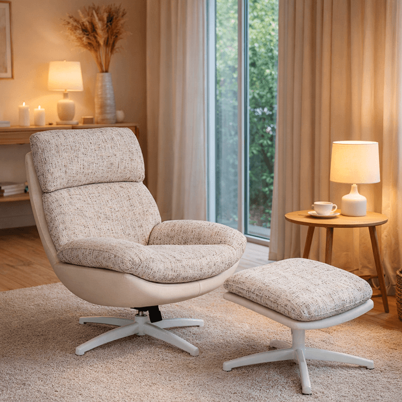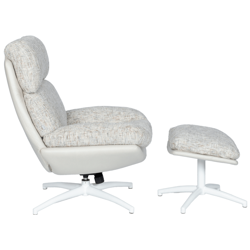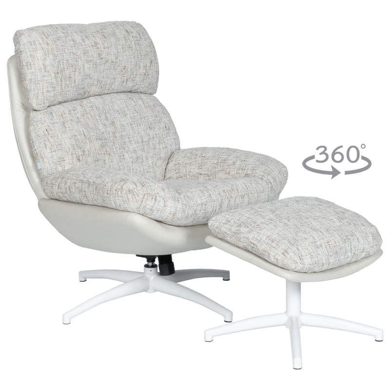 Кресло с табуретка VALONGO е проектирано да предложи оптимален комфорт чрез съчетание от мекота и функционалност. Моделът разполага със седалка и облегалка, тапицирани с висококачествена дамаска, и стабилна метална основа с прахово боядисани крака. За пълноценна релаксация са интегрирани функции за въртене на 360 градуса и люлеене. Комплектът включва и една табуретка, изпълнена в същия стил, която допълва удобството при ползване. Конструкцията е разчетена за максимално натоварване до 130 кг. Пълна информация за характеристиките на модела ще намерите в таб/поле „Техническа информация“.