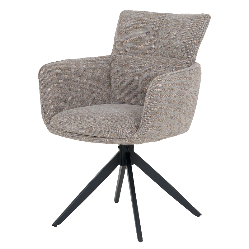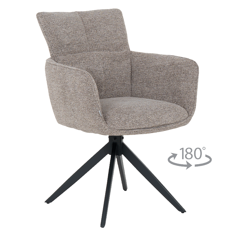 Трапезният стол Giles съчетава елегантност и модерен комфорт, превръщайки го в отлично допълнение към Вашата трапезария. Седалката е тапицирана с мека и издръжлива дамаска, като в нея са вградени покет пружини, които осигуряват оптимална опора и дълготрайно удобство. Моделът е оборудван с практичен механизъм за въртене на 180 градуса с автоматична функция за връщане в изходна позиция. Стабилността е гарантирана от здрава основа от прахово боядисан метал. Пълна информация за характеристиките на модела ще намерите в таб/поле „Техническа информация“.