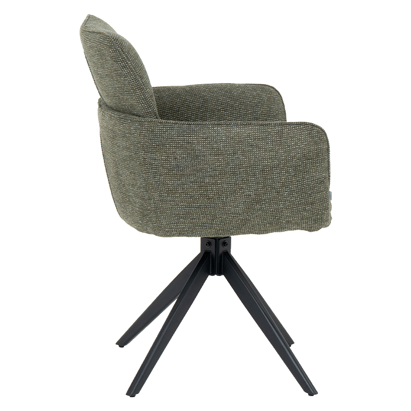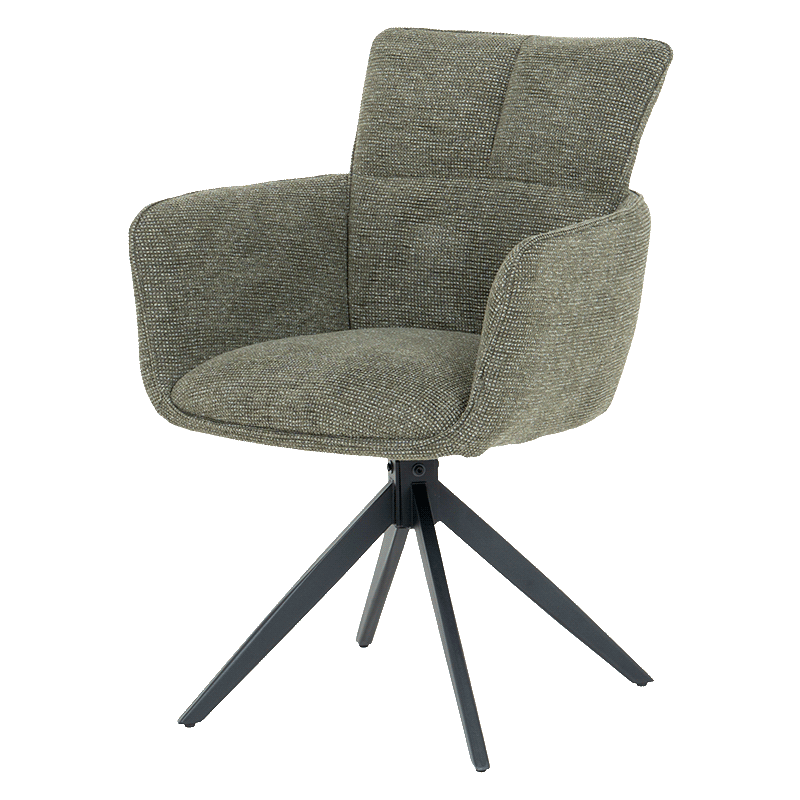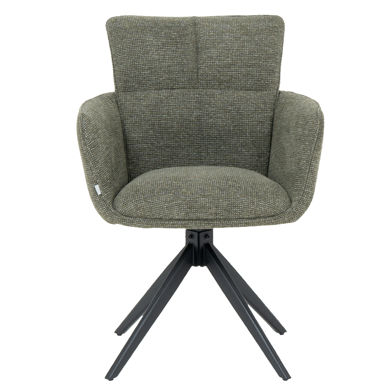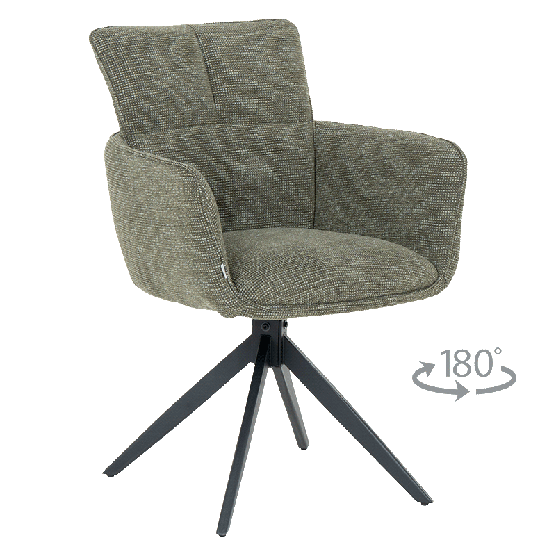 Трапезният стол Giles съчетава елегантност и модерен комфорт, превръщайки го в отлично допълнение към Вашата трапезария. Седалката е тапицирана с мека и издръжлива дамаска, като в нея са вградени покет пружини, които осигуряват оптимална опора и дълготрайно удобство. Моделът е оборудван с практичен механизъм за въртене на 180 градуса с автоматична функция за връщане в изходна позиция. Стабилността е гарантирана от здрава основа от прахово боядисан метал. Пълна информация за характеристиките на модела ще намерите в таб/поле „Техническа информация“.