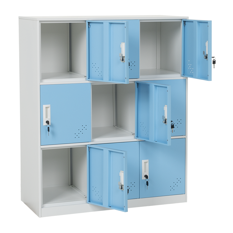 Метален шкаф Carmen CR-1298 J разполага с 9 отделения, всяко със самостоятелна вратичка с вентилационни отвори и заключване. Със своята практична височина от 109 см, моделът е подходящ за разнообразни пространства – от детски градини до домашни антрета и детски стаи. Изработен е от праховобоядисан метал, осигуряващ здравина и лесна поддръжка. Пълна информация за размерите и характеристиките на модела ще намерите в таблицата в таб/поле 'Техническа информация'.
