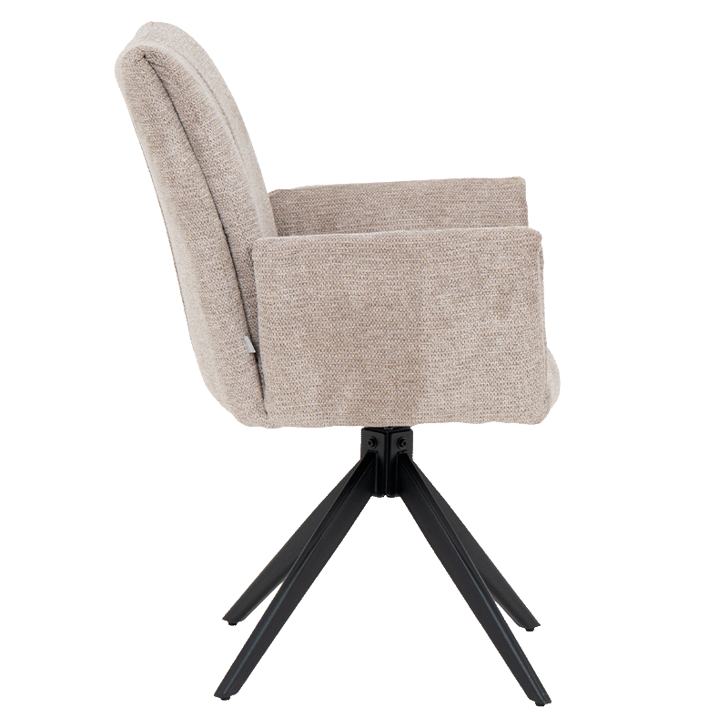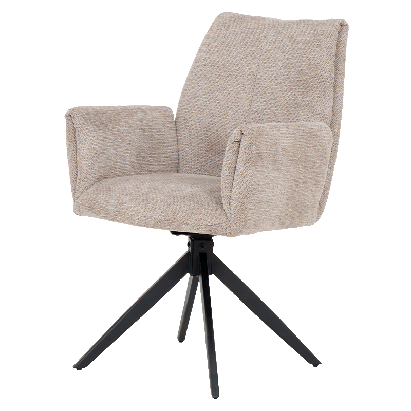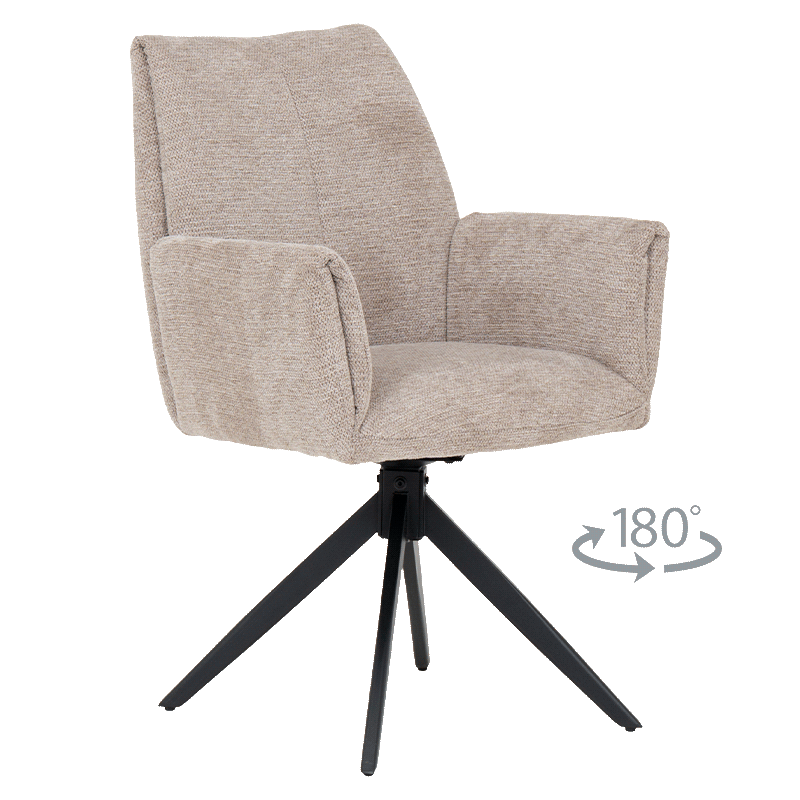 Трапезният стол Albans съчетава модерен дизайн и изключителен комфорт, което го прави идеален избор за съвременната трапезария. Седалката е тапицирана с мека и устойчива дамаска, като в нея са интегрирани покет пружини, осигуряващи оптимална опора и дълготрайно удобство при седене. Моделът разполага с функционален механизъм за въртене на 180 градуса с автоматично връщане в изходна позиция, което добавя практичност и свобода на движението. Стабилността е гарантирана от здрава основа от прахово боядисан метал. Пълна информация за характеристиките на модела ще намерите в таб/поле „Техническа информация“.