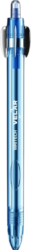 Прибираща се синя гел химикалка с мастило с бързо съхнене. Безшумно натискане на бутона. Ергономичен дизайн. Дебелина на писане 0.7 мм.
