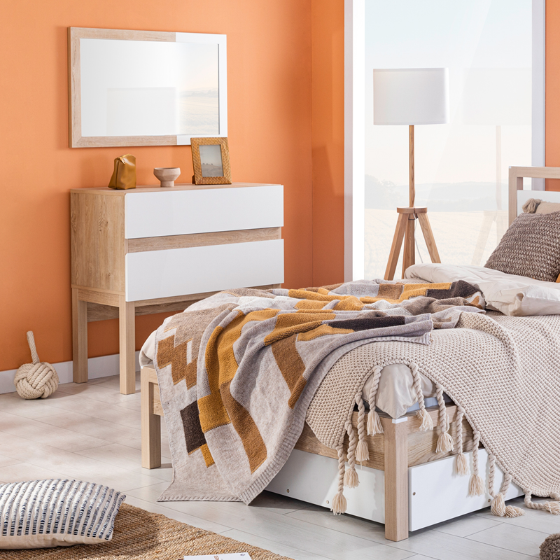 Тоалетката Palermo съчетава топлината на дървото с чистия бял цвят в компактен и функционален дизайн. Характерните за серията повърхности без дръжки и чекмеджета със система за плавно затваряне осигуряват тишина и комфорт при употреба. Моделът е проектиран с високи крака, което позволява под него да се прибере табуретката-ракла Palermo, спестявайки ценно място в стаята. Този интелигентен дизайн поддържа пространството подредено и свободно за движение. Пълна информация за характеристиките ще намерите в таб „Техническа информация“.
