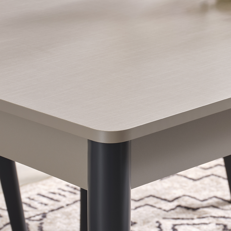 Разтегателна трапезна маса HUEVA впечатлява с изчистен дизайн и практичност, подходяща за динамичното ежедневие. Плотът от ПДЧ с меламиново покритие и дебелина 18 мм осигурява надеждност при употреба, а стабилните крака от праховобоядисан метал допълват модерната визия. Моделът се разтяга лесно от 150 до 185 см, което го прави удобен избор както за ежедневна употреба, така и при посрещане на гости. Пълна информация за размерите и характеристиките на модела ще намерите в таблицата в таб/поле "Техническа информация".